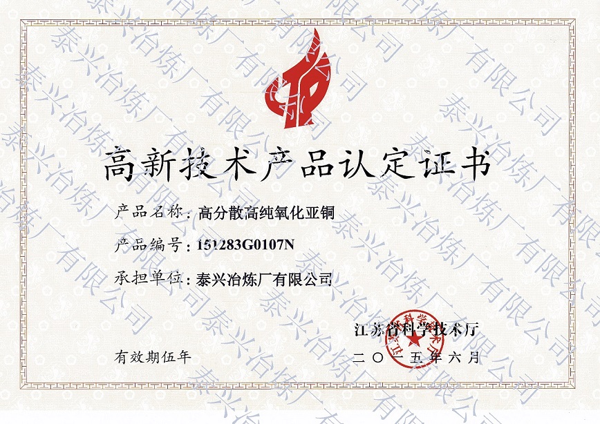 氧化亞銅生產(chǎn)歷史悠久,技術(shù)和規(guī)模在全 國(guó)均處于領(lǐng)先地位